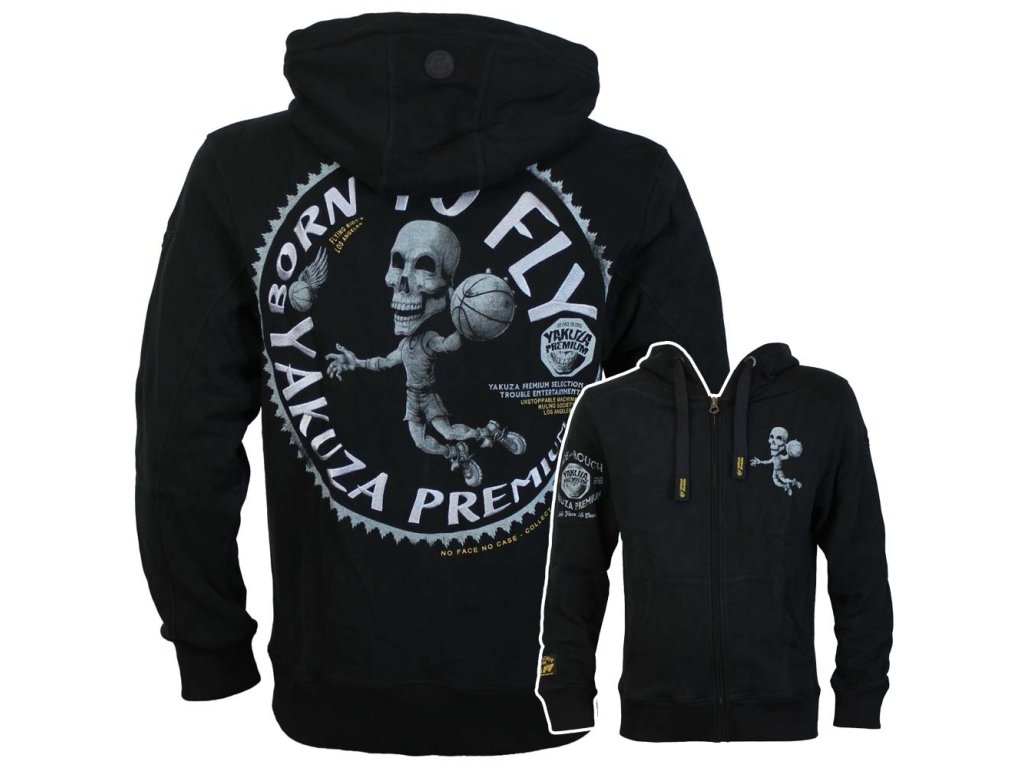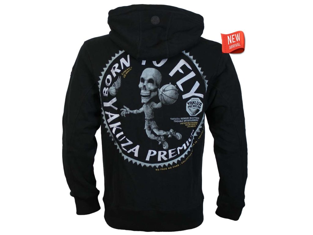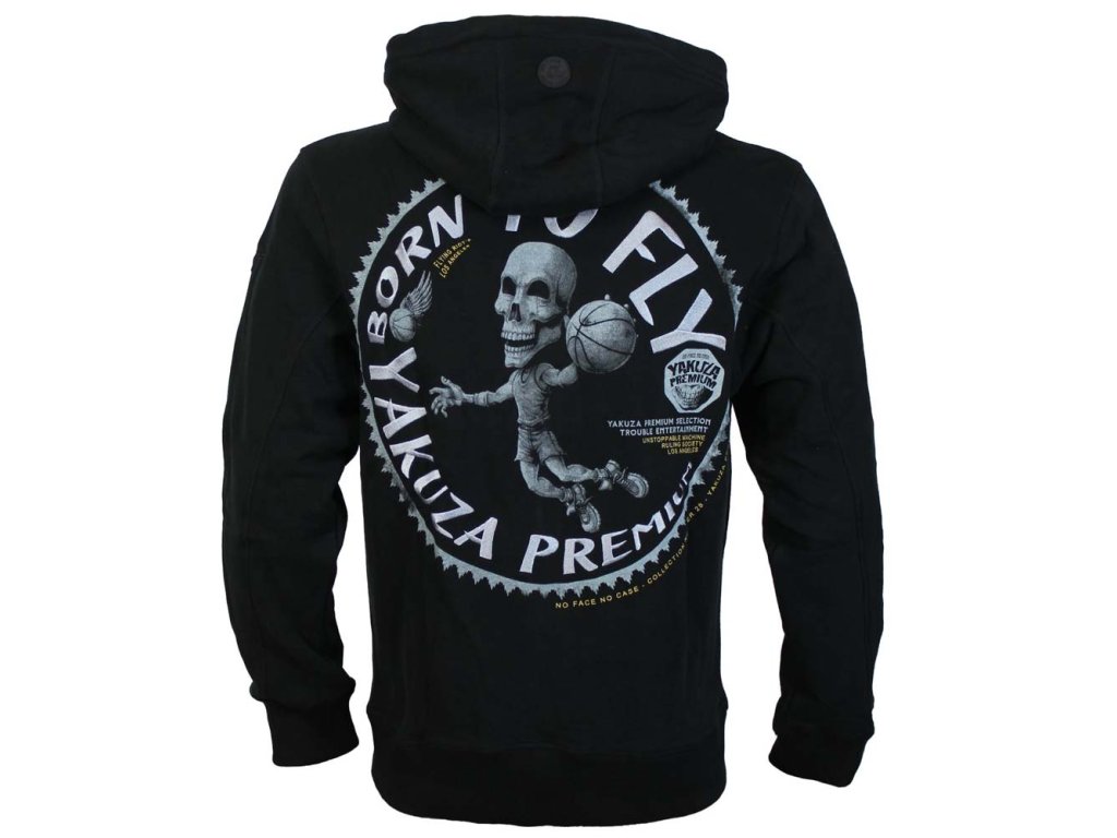 Pánská mikina Yakuza Premium YPS 4025C s velkým zadním potiskem Born to Fly a skeletonem s basketbalem. Kvalitní materiál 80/20, fleece vnitřek a přiléhavý regular fit.