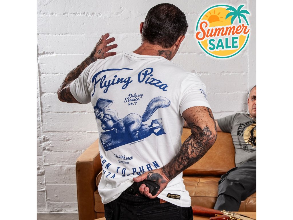 Pánské tričko Yakuza Premium Selection YPS 3800 bílé, Born to Burn - Flying Pizza - Delivery Service 24/7, Part 26 - jaro/léto roku 2025