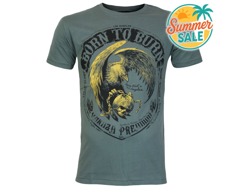 Tričko Yakuza Premium 3804 - zelené olivové, Born to Burn, Flying Riots Los Angeles