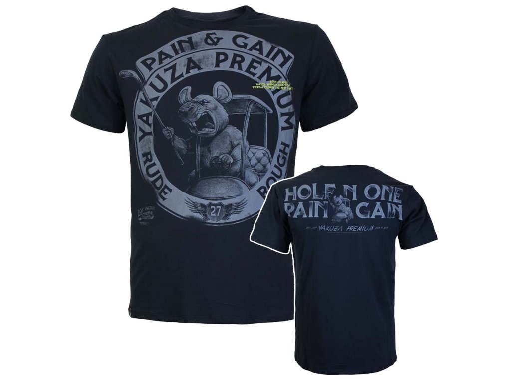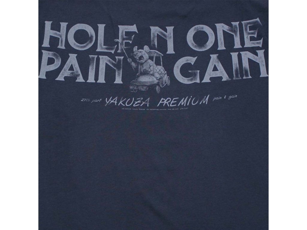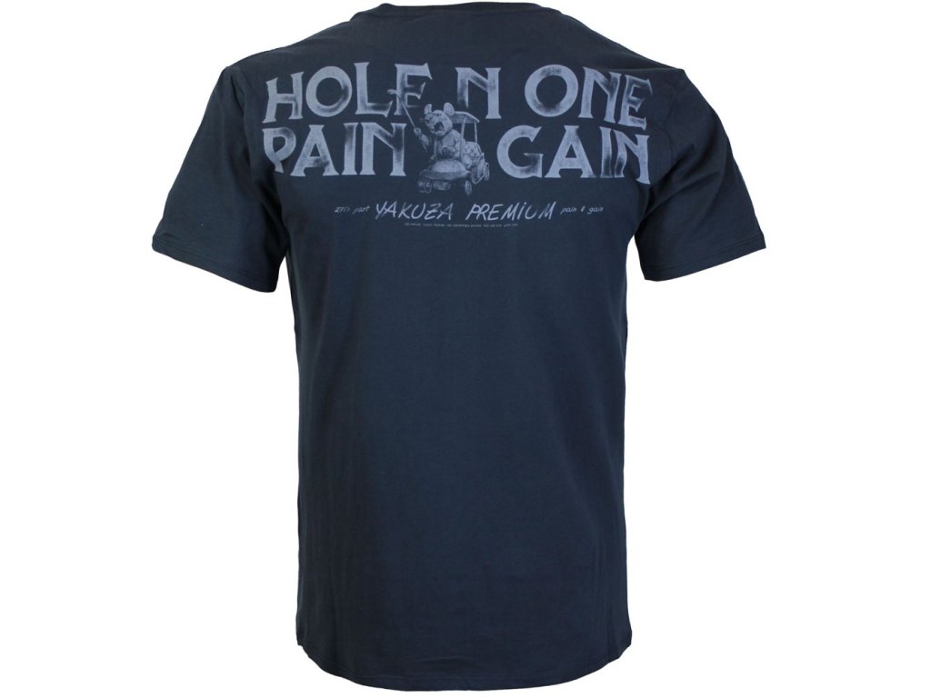 Na zádech najdeš nápis HOLE N ONE – PAIN & GAIN, který dotváří sportovní téma a surový charakter trička.