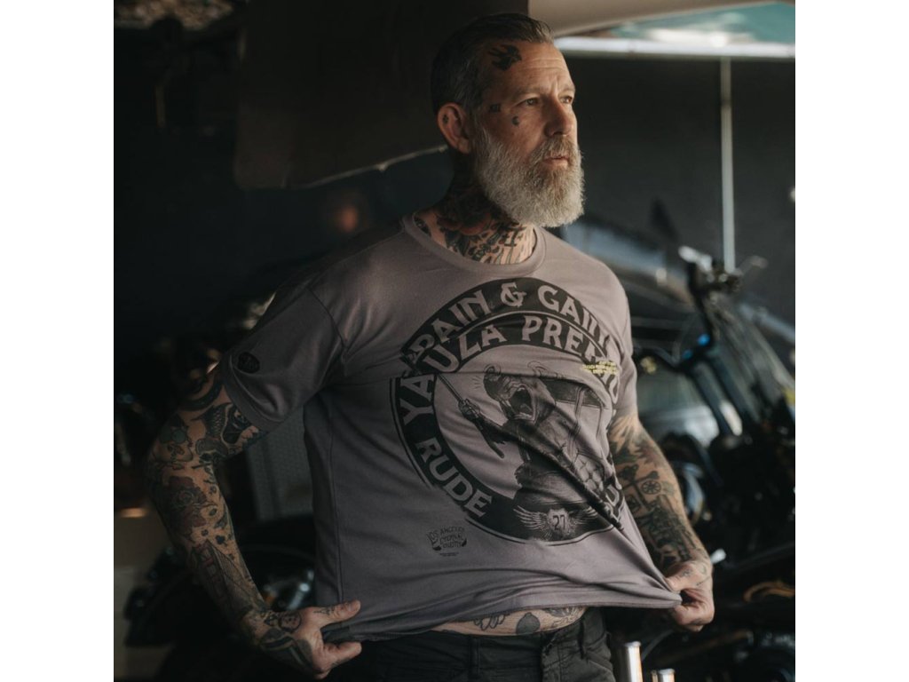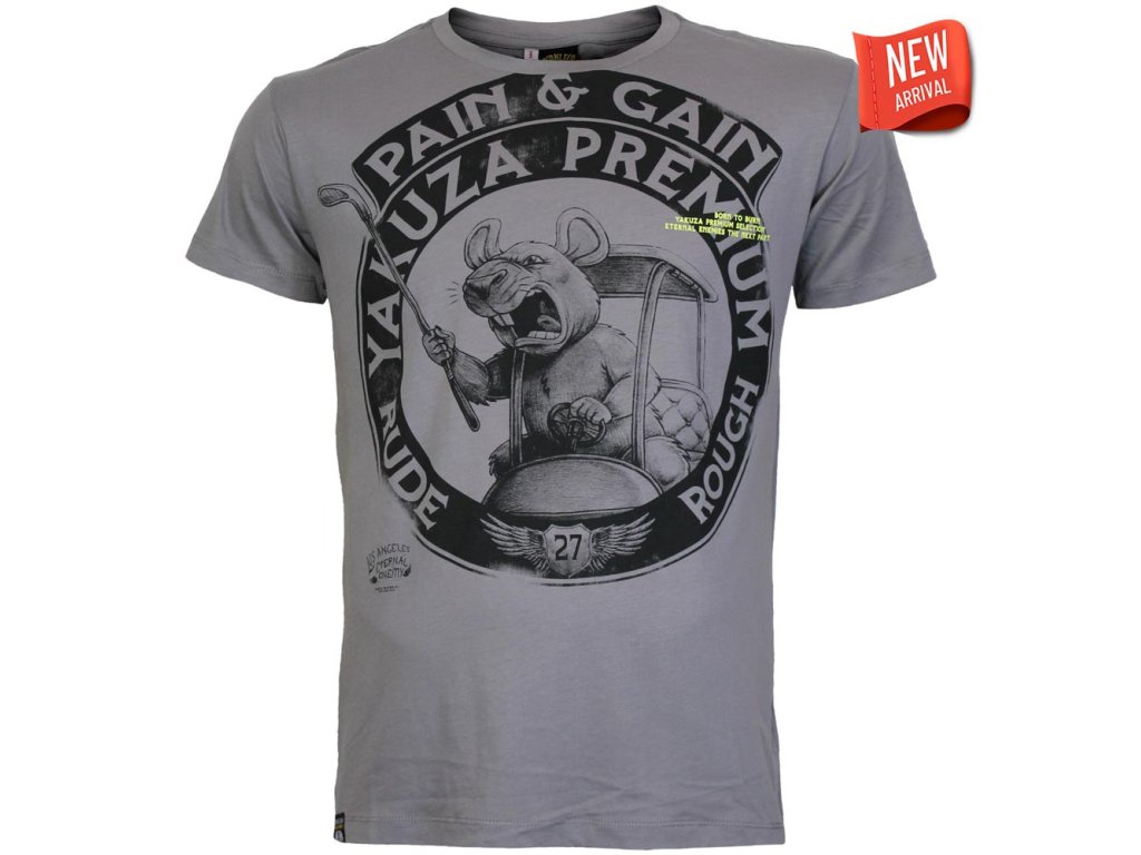 Pánské tričko Yakuza Premium 3907 šedé – Rude & Rough, Pain & Gain Los Angeles, Part 27 – podzim/zima roku 2025