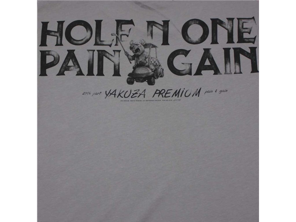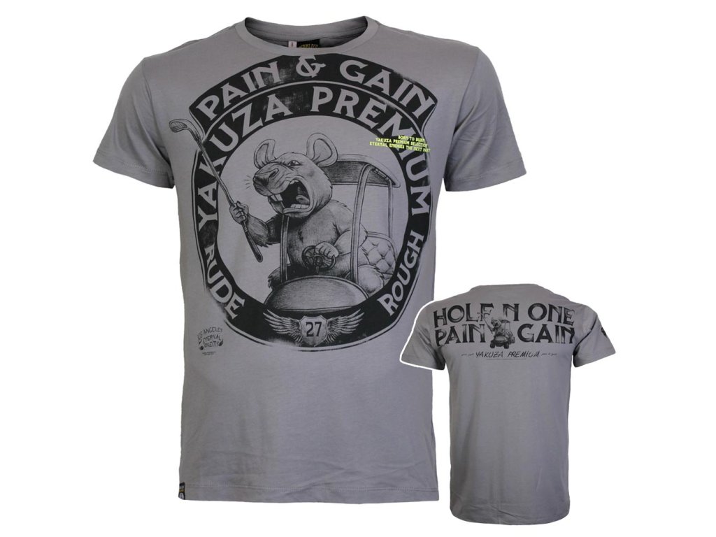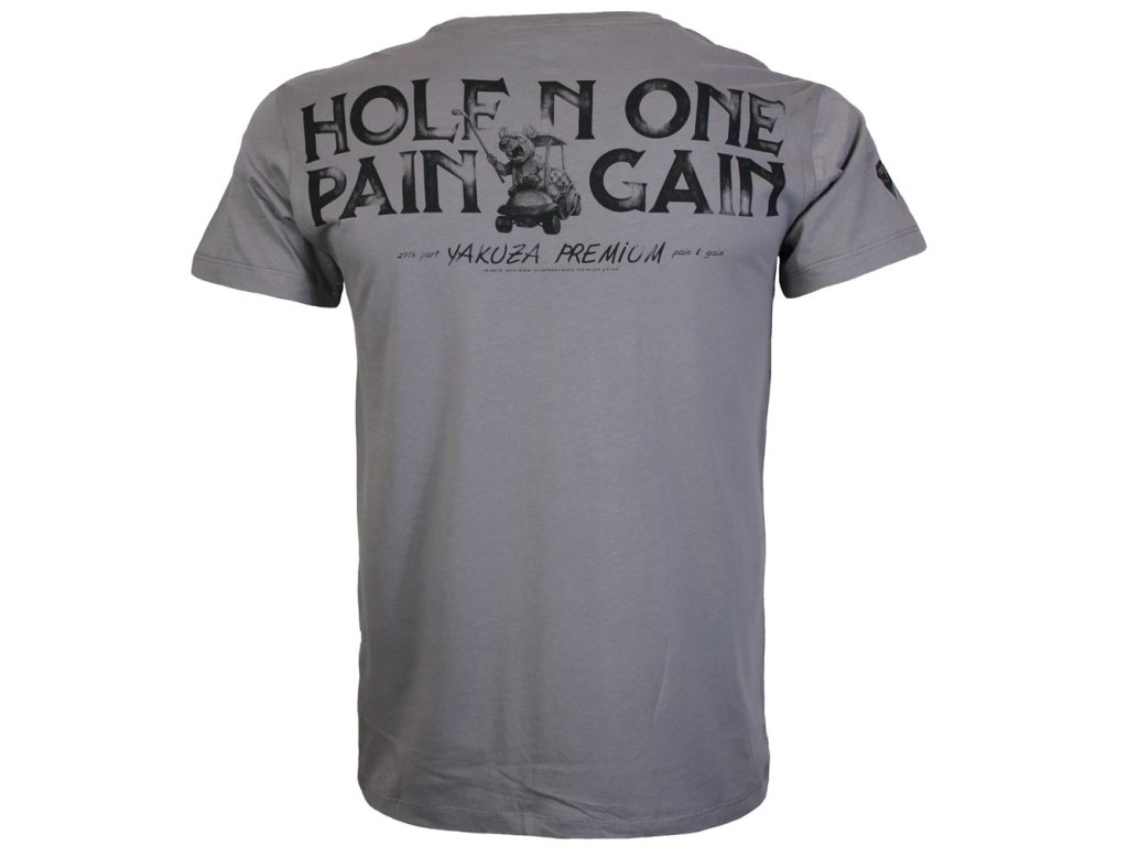 Na zádech najdeš nápis HOLE N ONE – PAIN & GAIN, který dotváří sportovní téma a surový charakter trička.