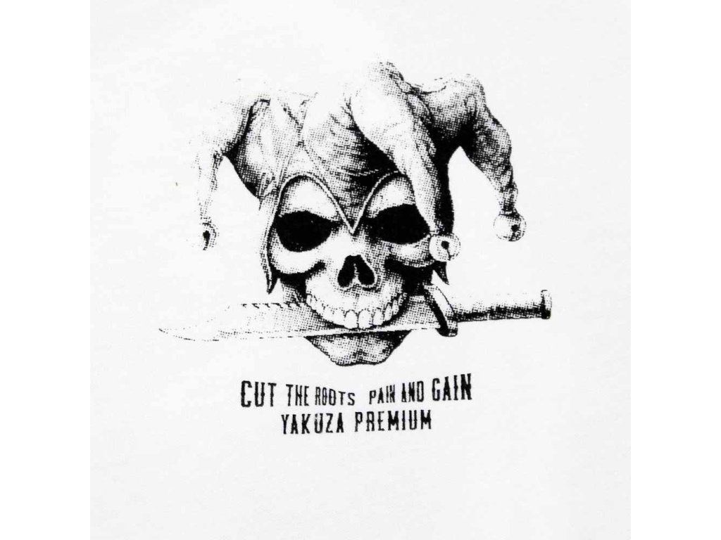 Tričko Yakuza Premium z kolekce Flaming Cuts servíruje nekompromisní design a rebelii v každém stehu. Dominantní potisk na zádech s lebkou v šaškovské čepici, dýkou a hesly „Cut the roots“ a „Pain and Gain“ tě nenechá splynout s davem. Menší potisk je i na hrudi, doplněný o ikonický label Yakuza Premium na spodním lemu. Decentní potisky i na rukávu a vnitřní straně. Styl, co řeže hluboko – nejen graficky.